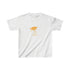 The kids heavy cotton tee is perfect for everyday use. The fabric is 100% cotton for solid colors. Polyester is included for heather-color variants. The shoulders have twill tape for improved durability. The collar is curl resistant due to ribbed knitting. There are no seams along the sides.