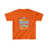 The kids heavy cotton tee is perfect for everyday use. The fabric is 100% cotton for solid colors. Polyester is included for heather-color variants. The shoulders have twill tape for improved durability. The collar is curl resistant due to ribbed knitting. There are no seams along the sides.