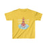 The kids heavy cotton tee is perfect for everyday use. The fabric is 100% cotton for solid colors. Polyester is included for heather-color variants. The shoulders have twill tape for improved durability. The collar is curl resistant due to ribbed knitting. There are no seams along the sides.