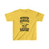 The kids heavy cotton tee is perfect for everyday use. The fabric is 100% cotton for solid colors. Polyester is included for heather-color variants. The shoulders have twill tape for improved durability. The collar is curl resistant due to ribbed knitting. There are no seams along the sides.