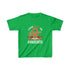The kids heavy cotton tee is perfect for everyday use. The fabric is 100% cotton for solid colors. Polyester is included for heather-color variants. The shoulders have twill tape for improved durability. The collar is curl resistant due to ribbed knitting. There are no seams along the sides.
