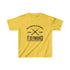 The kids heavy cotton tee is perfect for everyday use. The fabric is 100% cotton for solid colors. Polyester is included for heather-color variants. The shoulders have twill tape for improved durability. The collar is curl resistant due to ribbed knitting. There are no seams along the sides.