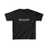 The kids heavy cotton tee is perfect for everyday use. The fabric is 100% cotton for solid colors. Polyester is included for heather-color variants. The shoulders have twill tape for improved durability. The collar is curl resistant due to ribbed knitting. There are no seams along the sides.